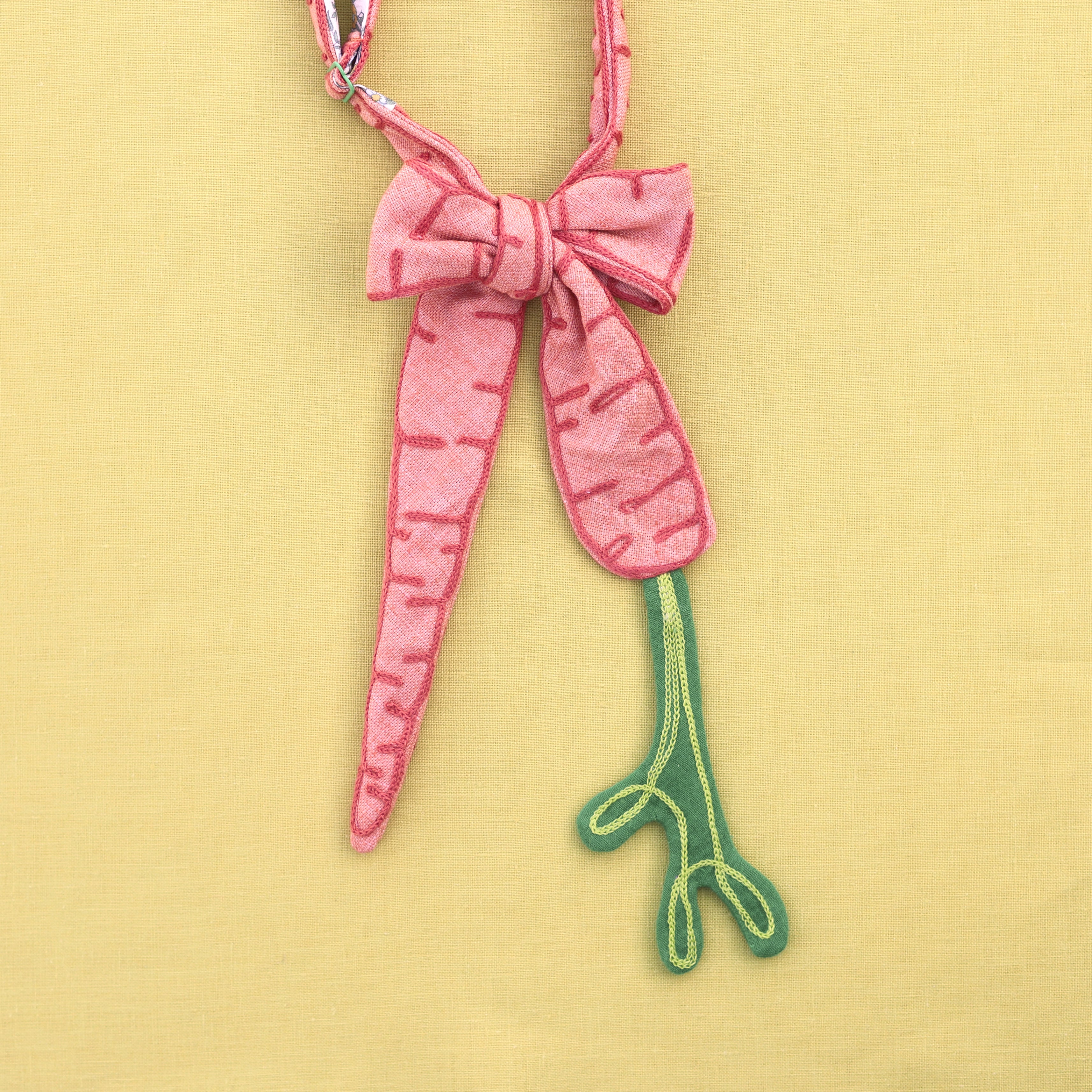 Second-hand materials with hand-guided chain stitching: cotton/rayon linen blend on the carrot, cotton stem. Hand wash cold, hang dry, warm iron.